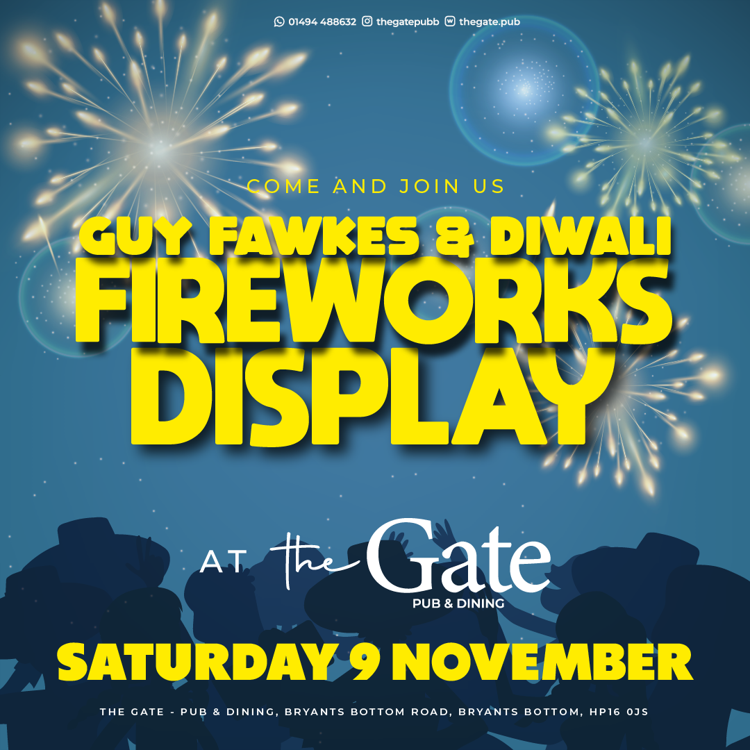 The Gate Pub & Dining The Gate Pub, Bryants Bottom Rd, Great Missenden, High Wycombe, Buckinghamshire, United KingdomJoin us for a mesmerizing evening under the stars, where the night sky will come alive with an incredible fireworks show that promises to be nothing short of spectacular. Bring your friends and family for an unforgettable night filled with laughter, warmth, and the magic of fireworks. Mark your calendars! And don't miss this chance …