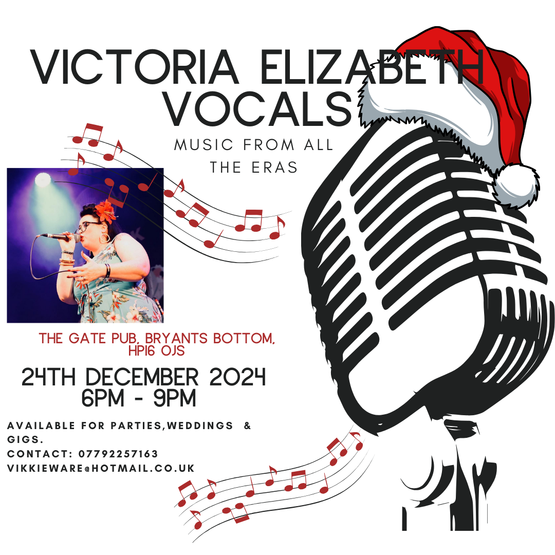 The Gate Pub & Dining The Gate Pub, Bryants Bottom Rd, Great Missenden, High Wycombe, Buckinghamshire, United KingdomJoin us for a festive performance with Victoria Elizabeth Vocals. Covering the best music from all the eras Starting 6PM - 9PM Contact us on: 📞01494 488632 bookings@thegate.pub