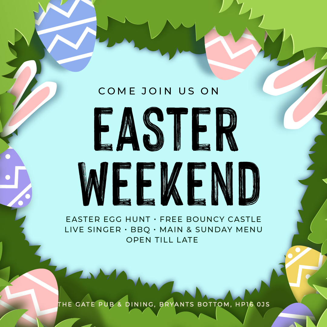 The Gate Pub & Dining The Gate Pub, Bryants Bottom Rd, Great Missenden, High Wycombe, Buckinghamshire, United KingdomJoin us at The Gate Pub for an unforgettable Easter weekend celebration! Friday March 29th and Saturday March 30th: Experience the joy of our bouncy castle and Easter egg hunt activities. Sunday, March 31st: Indulge in our delicious Roast menu served from 12pm to 5pm. Enjoy more fun with the bouncy castle and join the …
